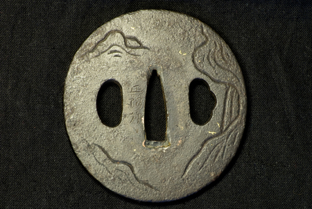 Japanese sword mountings on white background (Tsuba)