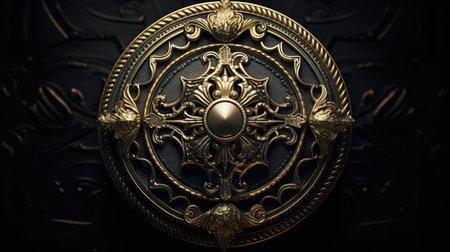 intricate black and gold badge