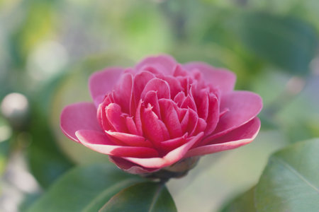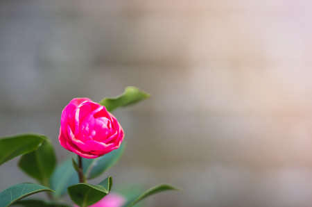 Beautiful pink Camellia flower in a garden. Selective focus.