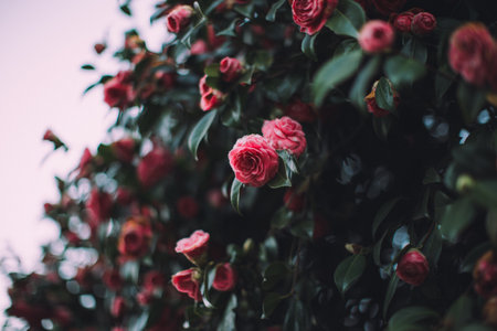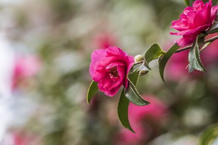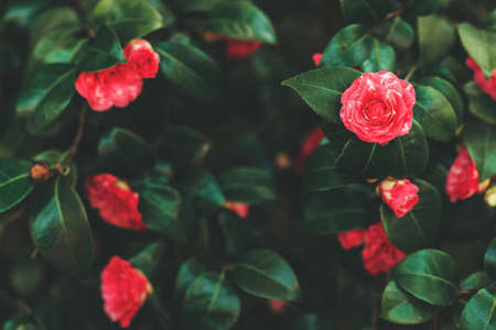 Beautiful flowers of Camellia sasanqua at the winter in Kyoto, Japan.