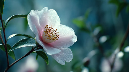 Delicate White and Pink Camellia Blossom in Gentle Light