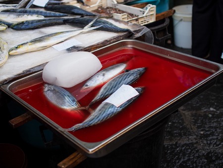 fresh fish or seafood at asian street market