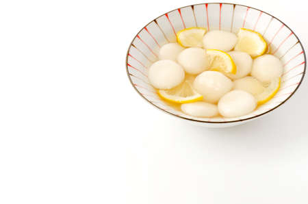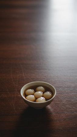 Top view of Tang Yuan(sweet dumplings balls) on stone background. Traditional cuisine for lantern festival, Mid-autumn, Dongzhi (winter solstice festival) and Chinese new year.