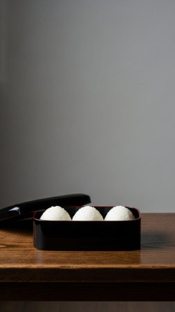 A high-concept, editorial photograph showcasing a traditional Japanese bento box. The vertical 9:16