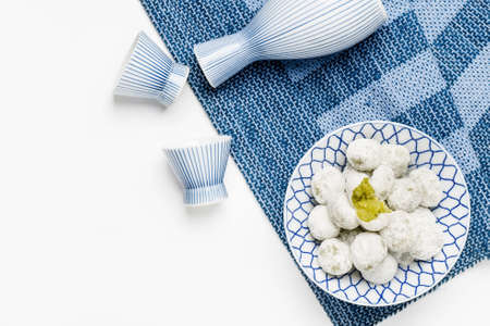 Generative AI, photo of urine on the table background. Traditional Japanese dessert, top view, flat lay
