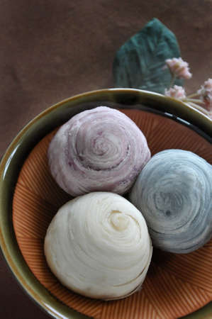 Korean food Songpyeon, half-moon-shaped rice cake, Sweet Rice Puffs, Honey Cookie
