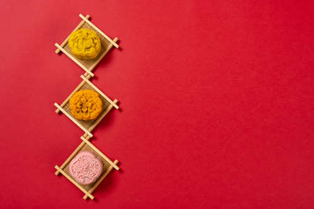 Tang Yuan Wedang Ronde, Chinese Glutinous Rice Dumpling Balls with Sugar Ginger Syrup on Red Chinese on Red Background for Winter Solstice New Year or Lantern Festival Food