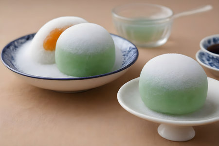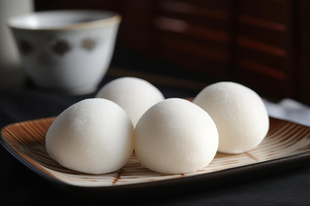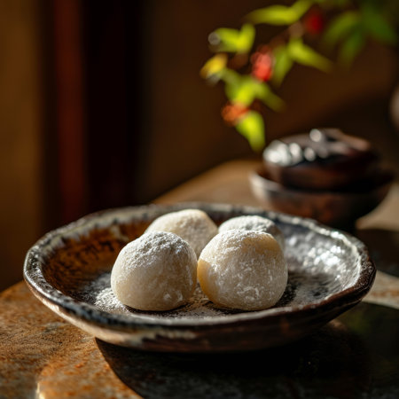 Mochi japanese dessert, high intricate details. Calmness, harmony, aesthetics.