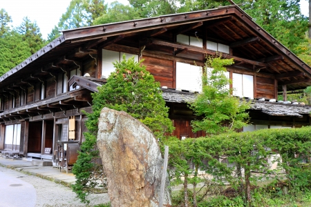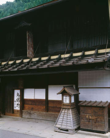 Post preserved old wooden house at Tsumago juku of Nakasendo, Nagiso, Kiso District, Nagano Prefecture, Japan. Famous travel destination to see ancient town connected between Tokyo and Kyoto.