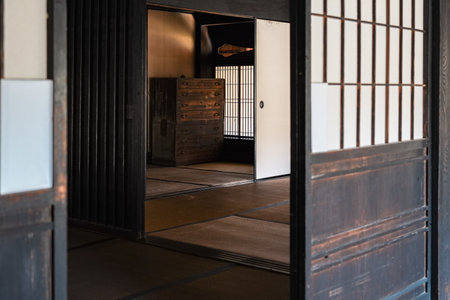 AI Generated. Interior of traditional old japanese house in historical Tsumago post town