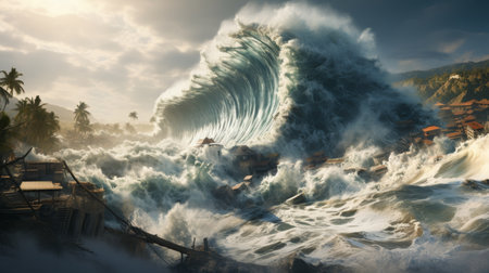 Tsunami Honganji Viharaya is the giant Buddha Statue, dedicated to Tsunami victims, located on the tiny island and surrounded by lush palm garden in Peraliya, Sri Lanka.