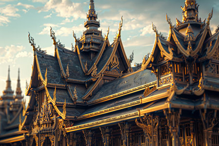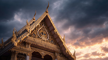 Nakhonpathom / Thailand - July 3 2019: Close up beautiful Srisathong temple roof for Buddhist respect and make merit