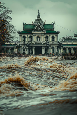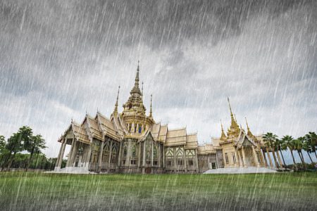 Wat Luang Pho Toh temple with falling rain in Nakhon Ratchasima province, Thailand