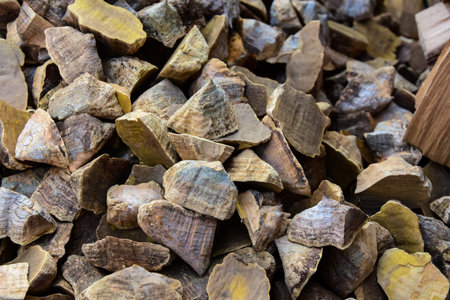 bunch of wooden palo santo sticks on a neutral background. soft focus, macro frame