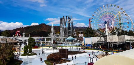 YAMANASHI, JAPAN - NOVEMBER 24, 2019: Tourist enjoy ice skating at Fuji Q highland in Yamanashi,Japan.This theme park have Mt.Fuji view background.
