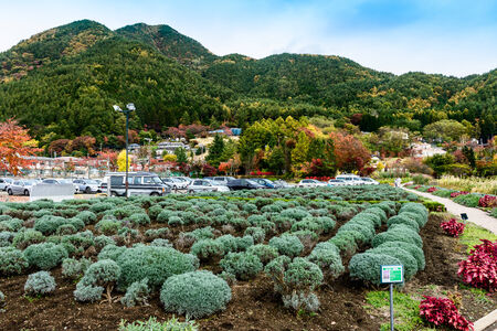 Autumn scenery at sunny day in Kusatsu Onsen Town, Gunma, Japan.
