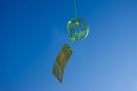 Japanese wind chime against blue sky
