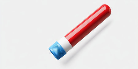 The bright red collection tube rests on a clean white background, symbolizing the readiness for important laboratory tests and healthcare analysis.