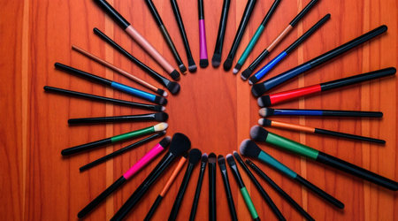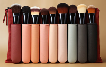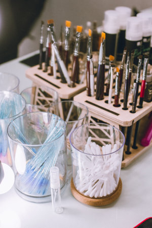 Brushes make up. Cosmetic drawing products for woman body. Glamo