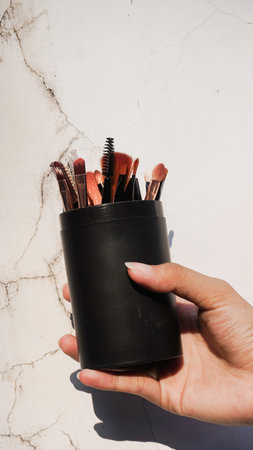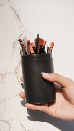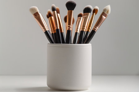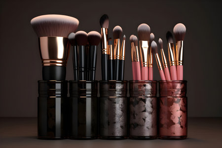 set of brushes in a glass for applying makeup. tools and fixtures makeup artist. background