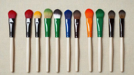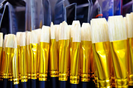 Brushes for painting. Various shapes of bristle, different handlers of artistic tools
