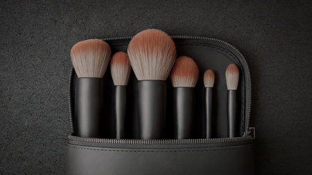 makeup brushes are in a drawer at the makeup artists workplace. close-up