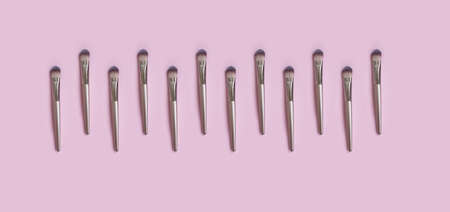 Makeup artist tools. Brushes for make-up from natural white nap in a beautiful frame.
