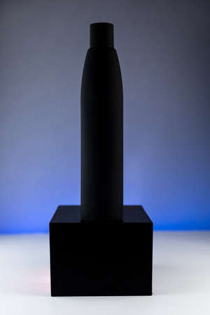 A sleek product stands illuminated in a dark studio showcasing modern design and artistry.