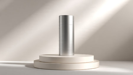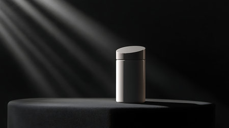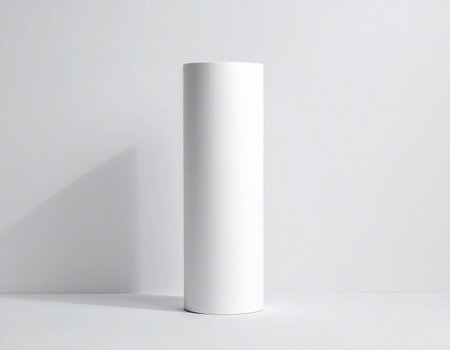 A minimalistic white cylinder container sits on a clean table, highlighted by soft lighting and gentle shadows, perfect for stylish home or office decor settings.