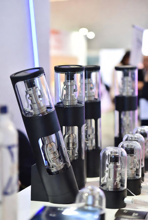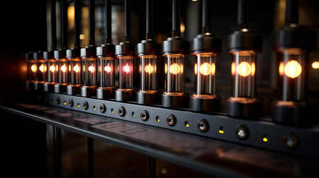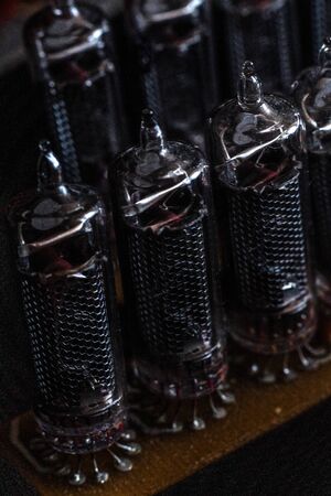 Close up of vacuum tubes for electronic devices in the exhibition hall.