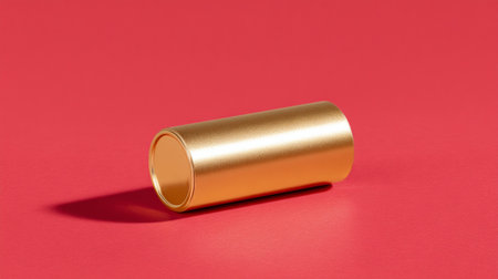 A shiny golden cylindrical object resting on bright red surface, creating striking visual contrast. smooth texture and vibrant colors evoke sense of celebration and festivity