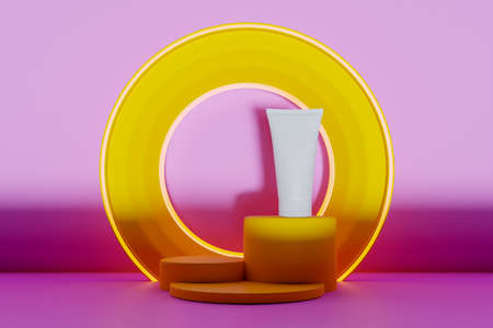 Beauty spa skincare product mock up package, advertising brand, natural cosmetic, serum on podium. White cream tube blank bottle packaging on pedestal. Medical skin care moisturizer. Copy space