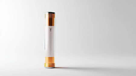 A tall, slender white cylindrical tube stands upright on a white surface, casting a soft shadow against a plain white background.