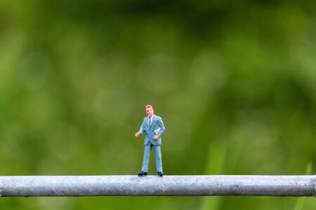 A person's hand is holding a small, miniature model of a modern industrial cylinder or silo, with a window revealing a sandy-looking substance inside. The image conveys concepts of technology, small-scale models, and industrial design.