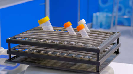 Test tubes with biomaterial in the laboratory. concept of medical, chemicals or scientific laboratory research and Innovation in the laboratory.