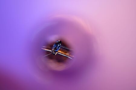 Bright water worms in aquarium, blue background