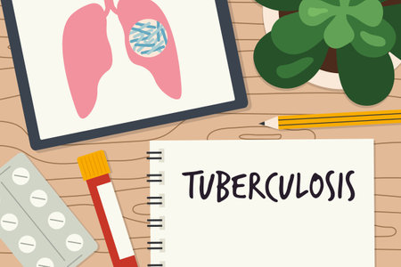 digital tablet displaying lungs infected with bacteria and spiral notebook with tuberculosis word - vector illustration