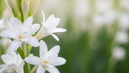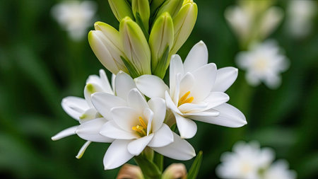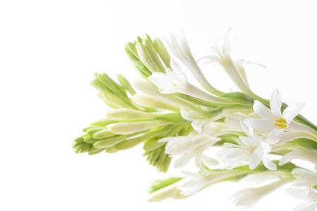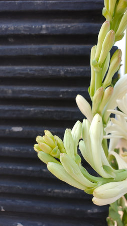 Floral spring background from buds and opening flowers of a perennial plant of the genus Polyantes of the subfamily Agave family Asparagus Tuberose. Flower for cosmetology.