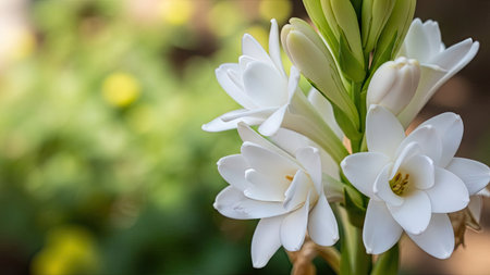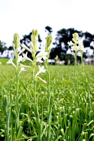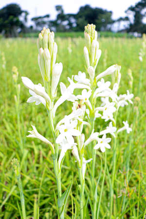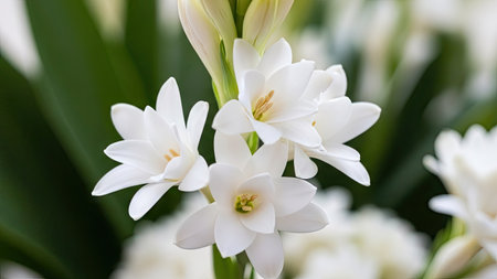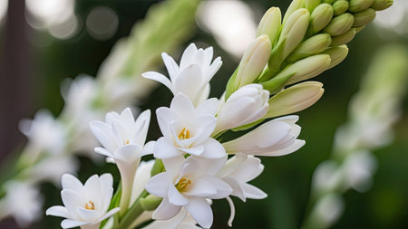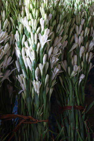 Bunch of Beautiful Agave Amica or Tuberose Flowers and Buds, A Popular Floral Used As A Note in Perfumery or Mixed Floral Scents.