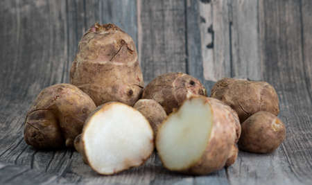 jerusalem artichokes on wood background