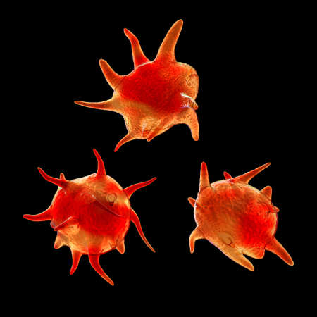 Brain-eating amoeba infection, naegleriasis. Trophozite, infectious form of the parasite Naegleria fowleri, 3D illustration