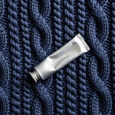 A square, tight close-up, centered overhead shot detailing the heavy texture of a dark indigo weight