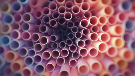 Colorful Abstract Macro of Stacked Plastic Straws. Generative AI