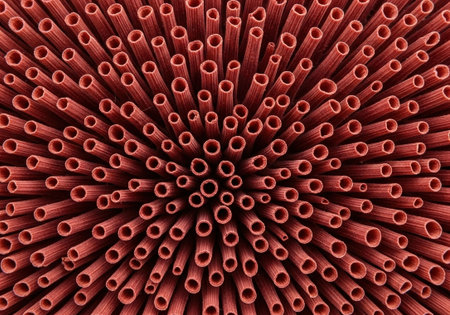 closeup of red plastic pipes with their insides