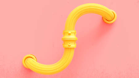Yellow conduit on pink wall background. Minimal idea concept, 3D Render.