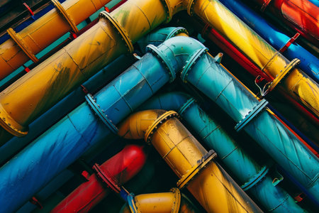Group of colorful pipes connected to each. Generative AI.