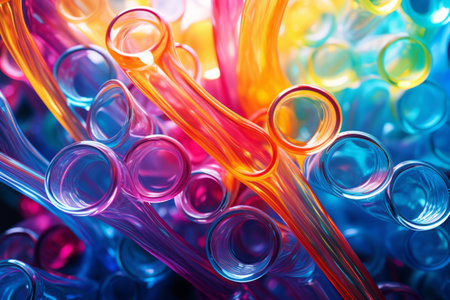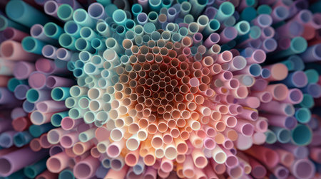 Colorful Abstract Macro of Stacked Plastic Straws. Generative AI
