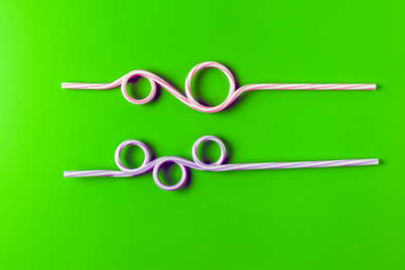 Colorful straws for beverage soft drink on colored background. creative photo.