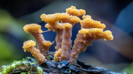 Stunning Golden Mushrooms Macro Photography Nature Closeup Detailed art cap dark life wood stem rare