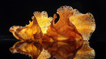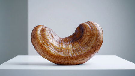 This artistic presentation features a large reishi mushroom, showcasing its unique texture and organic form. Perfect for nature and wellness-themed projects.